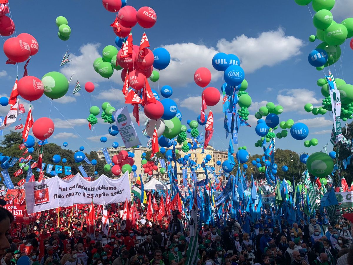 ROMA (ITALPRESS) – Al via la grande manifestazione nazionale organizzata Cgil, Cisl, Uil in piazza San Giovanni a Roma con lo slogan “Mai più fascismi: per il lavoro, la partecipazione, la democrazia”. Sul palco si alterneranno gli interventi di una pensionata della Uil, del segretario generale della Cisl Luigi Sbarra, di una lavoratrice della sanità delegata Cgil, del segretario generale della Uil Pierpaolo Bombardieri, di una lavoratrice del commercio delegata Cisl, del segretario generale della Ces Luca Visentini. Concluderà il segretario generale della Cgil Maurizio Landini. Presenti circa 50mila persone.“Questa è una manifestazione che difende la democrazia di tutti – ha detto Landini in merito alle accuse di chi parla di iniziative di parte e in particolare alle critiche di Matteo Salvini -. L’attacco alla Cgil, l’attacco al sindacato è un attacco alla dignità del lavoro di tutto il Paese. Siamo qui non per difendere qualcuno ma per difendere la democrazia e per estenderla”.