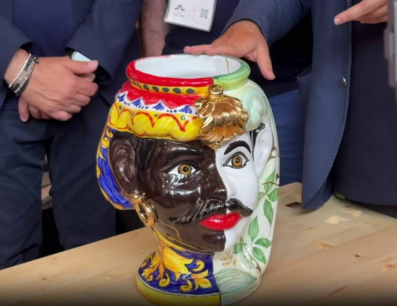 Stessa tecnica che è stata usata per una Testa di Moro molto particolare. Una Testa di Moro esposta a Tokyo in occasione dell’arrivo della nave-scuola Amerigo Vespucci ma che si era danneggiata. Il progetto Made in Sicily ha così chiesto all’artista giapponese Aya Oguma la sua riparazione, che ha poi fatto di questa pezzo un’opera unica al mondo.