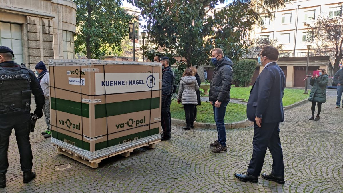 ROMA (ITALPRESS) – Sono arrivate nella sede dell’Istituto Superiore di Sanità le prime 47 mila dosi del vaccino contro il Sars-Cov-2 prodotto dall’azienda Moderna destinate all’Italia. I vaccini sono stati stoccati presso l’Istituto e nei prossimi giorni verranno distribuiti alle Regioni, con i mezzi messi a disposizione da Poste Italiane – dando priorità a quelle con un maggior numero di abitanti sopra gli 80 anni.“Appena un anno fa questo virus era sostanzialmente sconosciuto, e ora abbiamo già due vaccini approvati, con la prospettiva a breve che se ne aggiungano altri, un traguardo impensabile frutto di uno sforzo senza precedenti nella storia. – sottolinea il presidente dell’Iss Silvio Brusaferro -. Ora le istituzioni, in Italia come nel resto del mondo, sono chiamate ad un’altra sfida epocale, quella di portare il vaccino a tutti i cittadini. Le vaccinazioni rappresentano un’arma decisiva per sconfiggere la pandemia, ma nel frattempo dobbiamo continuare a usare quelle misure che abbiamo imparato a conoscere in questo anno difficile, il distanziamento, l’uso delle mascherine e l’igiene”.