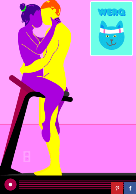 IL TAPPETO VOLANTE Salta sul tuo tapis roulant, appoggiando una gamba su ciascun bracciolo, in modo che il tuo bacino sia posizionato sul corpo centrale della macchina. Lui scivola dentro di te mentre te ne stai appollaiata in questo modo e si aggrappa al tuo sedere per spingere in profondità.