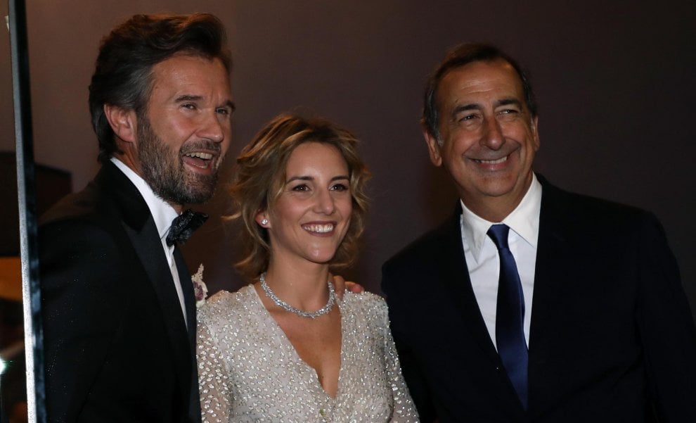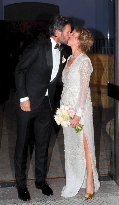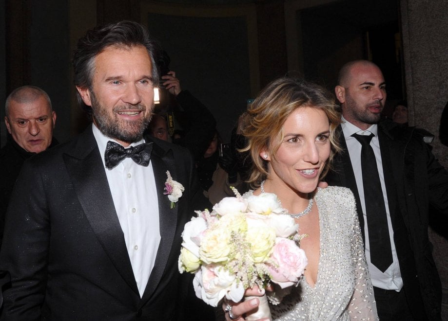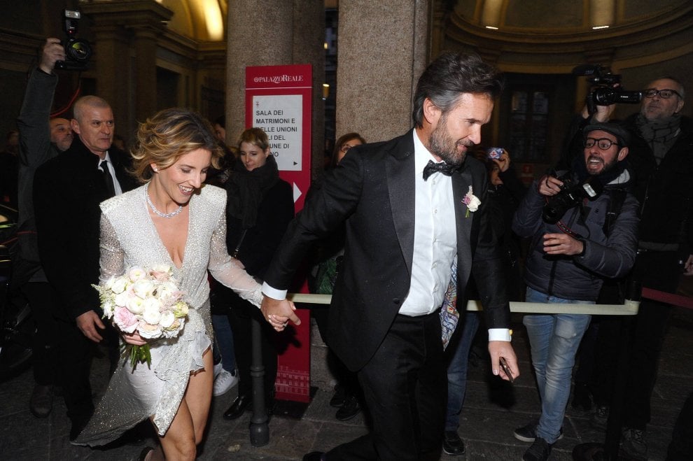 A celebrare le nozze il sindaco di Milano Giuseppe Sala. Gli sposi, lui in abito scuro col papillon e lei in abito bianco con paillettes e scarpe color oro, sono arrivati in macchina fin sotto il portico e hanno percorso insieme i pochi passi che li separavano dalla sala dove si celebrano i matrimoni civili.