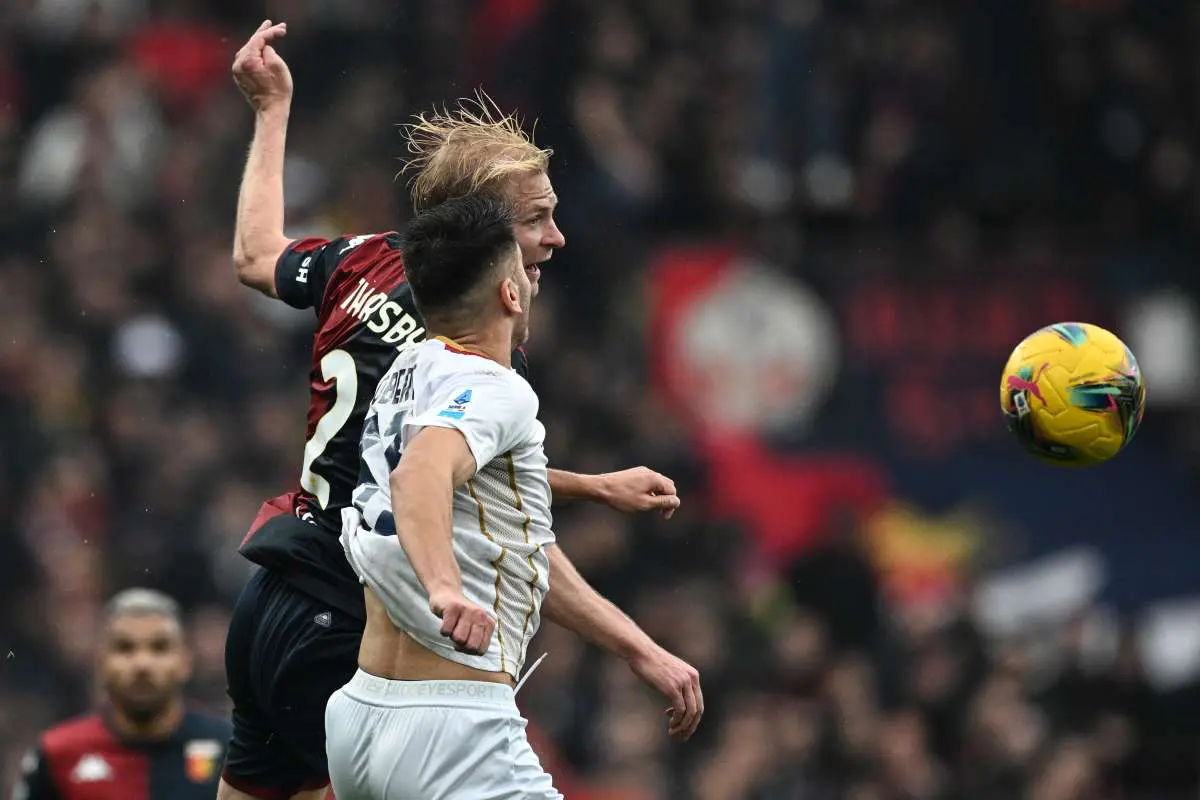 GENOVA (ITALPRESS) – Pareggio intenso e divertente tra Genoa e Cagliari, che sotto il diluvio di Marassi non vanno oltre il 2-2 in quello che rappresentava uno snodo importante per la lotta salvezza. Due rigori per il Cagliari, siglati da Marin e Piccoli, ad aprire e chiudere le marcature, intervallati dalle reti genoane di Frendrup e Miretti nel giorno del debutto sulla panchina ligure di Vieira per l’esonerato Gilardino. L’episodio che apre la partita arriva dopo sette minuti di gioco, con il tocco di mano di Thorsby sul colpo di testa di Mina e il calcio di rigore successivamente assegnato da Sozza e realizzato da Marin. Vantaggio Cagliari che durerà però soli quattro minuti, con il Genoa che troverà il pareggio sul cambio di campo che favorisce l’inserimento in area vincente da parte di Frendrup, bravo a punire Sherri con il piatto sinistro. Grande equilibrio e vivacità a Marassi, con il Genoa che al 21′ si rifarà di nuovo pericoloso, sull’imbucata di Badelj che mette davanti la porta Miretti, non freddo nel servire Thorsby a porta sguarnita ma goffo nel tiro che termina largo. Al tramonto del primo tempo è il Cagliari a tornare in avanti, sulla sgasata di Piccoli e il servizio per Gaetano, che dentro l’area controlla e calcia in diagonale, trovando la bella parata in tuffo di Leali. Si va all’intervallo sul punteggio di 1-1 e in avvio di ripresa sarà ancora Gaetano a rendersi pericoloso, ritrovandosi a tu per tu con Leali ma calciando in maniera troppo prevedibile per il portiere del Genoa, che blocca in tuffo. Episodio decisivo per il cambio di fronte da parte del Grifone, che al 59′ troverà il vantaggio: fuga sulla destra di Thorsby, che arriva sul fondo e mette al centro per Miretti, bravo a battere Sherri e fare 2-1 per i suoi. Finale di gara acceso, con il Cagliari che tenta l’assedio ad un Genoa che cerca invece di ripartire veloce. All’85’ però il contatto nell’area genoana tra Martin e Piccoli causa un altro calcio di rigore in favore del Cagliari, con lo stesso centravanti dei sardi ad incaricarsi della battuta e a realizzare la rete del 2-2 finale. – Foto Image –
