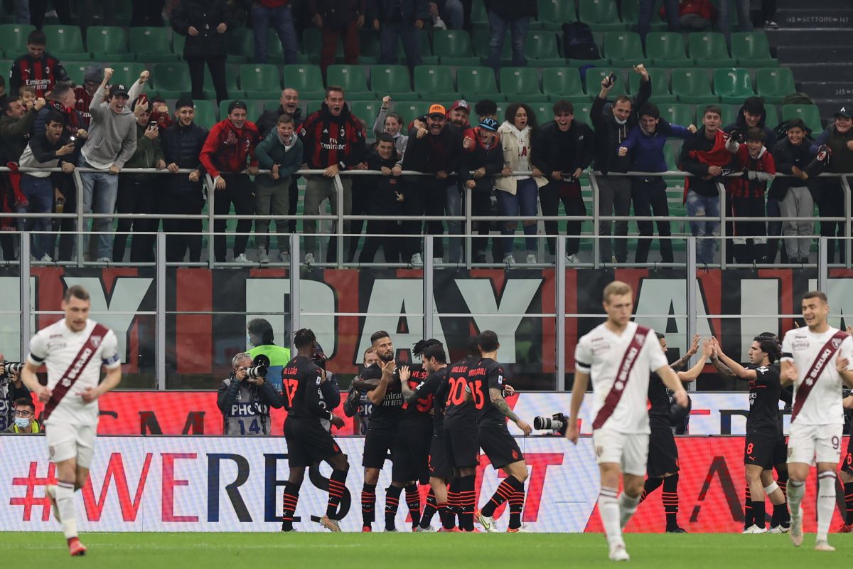 MILANO (ITALPRESS) – Il Milan supera a San Siro il Torino per 1-0 al termine di una sfida molto combattuta e poco spettacolare, decisa di fatto alla prima occasione utile creata dalla capolista. Sono infatti i rossoneri a passare già al 14′ quando Tonali calcia un corner dalla destra sul quale arriva Krunic che spizza di testa sul secondo palo trovando liberissimo Giroud che mette dentro da due passi per il gol partita. Alla seconda e unica altra opportunità degna di nota della prima frazione, i padroni di casa sfiorano il raddoppio. A pochi istanti dall’intervallo è Krunic a impensierire Milinkovic-Savic con un colpo di testa dopo una punizione battuta da Tonali, con la sfera che esce di poco alla sinistra del portiere. Nella ripresa, sono i granata a partire meglio e a bussare per primi quando al 3′ Pobega incorna dopo un angolo di Rodriguez ma manda alto dopo essersi smarcato bene da Kessiè. All’8′ Linetty si inserisce bene tra le linee e serve Belotti che da buona posizione sbuccia però il pallone che finisce docile tra le braccia di Tatarusanu. Il portiere romeno salva i suoi al 31′ su Sanabria. Al 40′ Praet entra in area e prova a concludere ma il suo tentativo scheggia la parte alta della traversa dopo la deviazione di Tomori. All’ultimo secondo, Tatarusanu smanaccia in corner una palla sporca che si stava indirizzando pericolosamente verso la porta dopo una mischia furibonda. Nonostante un secondo tempo in sofferenza, il diavolo può esultare per un successo grazie al quale rimane in vetta da solo in attesa del match del Napoli.