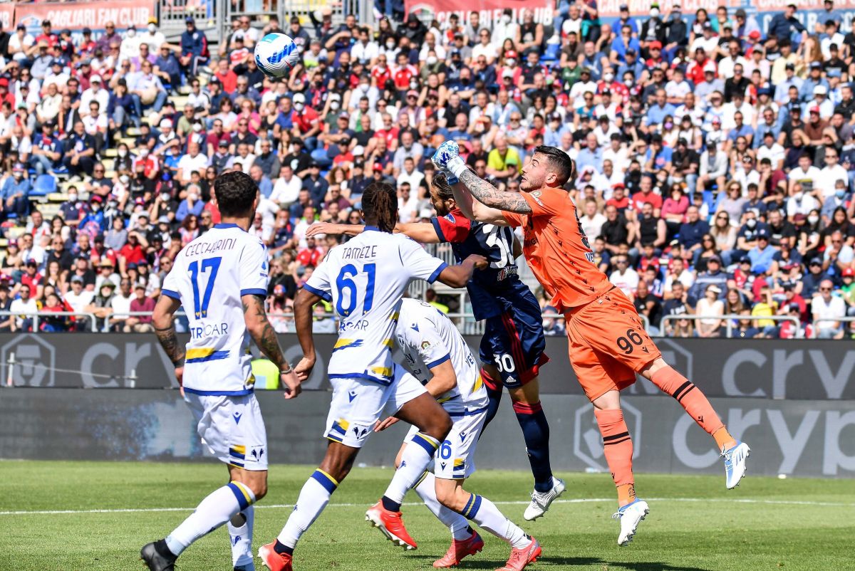 CAGLIARI (ITALPRESS) – Si complica tremendamente la vita da solo il Cagliari di Walter Mazzarri che incassa la seconda sconfitta consecutiva dopo quella di Genova e ora rischia grosso in classifica. I veronesi Barak e Caprari, con due reti nella prima frazione di gioco, hanno virtualmente chiuso i conti anche se nella ripresa i padroni di casa hanno provato a rimetterla in sesto con la punizione di Joao Pedro al 12′. Tutto storto per la squadra isolana che dopo appena otto minuti si è ritrovata sotto di un gol (autore Barak) e che ha dovuto inseguire per tutta la gara. La fortuna non ha certo assistito Joao Pedro e compagni visto che per ben due volte i legni, prima su Altare e poi su Keita, hanno impedito al Cagliari di andare a bersaglio. A tagliare le gambe ai rossoblù è poi stato Caprari che, al 44′, ha raddoppiato sfruttando un lancio di quaranta metri di Ilic. A nulla sono serviti i tentativi di Mazzarri di rimettere la gara sul binario di parità perchè i cambi in mezzo al campo e in attacco non hanno sortito gli effetti sperati. Nessun rischio particolare dalle parti di Montipò che per tutta la prima frazione si è limitato all’ordinaria amministrazione e quando non ci è arrivato lui, ci ha pensato la traversa a dargli una mano. L’unico lampo è arrivato sulla punizione di Joao Pedro che ha piazzato all’angolino destro una palla dai sedici metri ma nient’altro è andato per il verso giusto. Il Verona può far festa mentre al Cagliari non resta che prepararsi ad un finale ad altissima tensione e con i tifosi che hanno a lungo contestato la squadra a fine partita. Tre gare, due scontri diretti in casa di Salernitana e Venezia con in mezzo la sfida alla Unipol Domus contro l’Inter per cercare di evitare la serie B.(ITALPRESS).