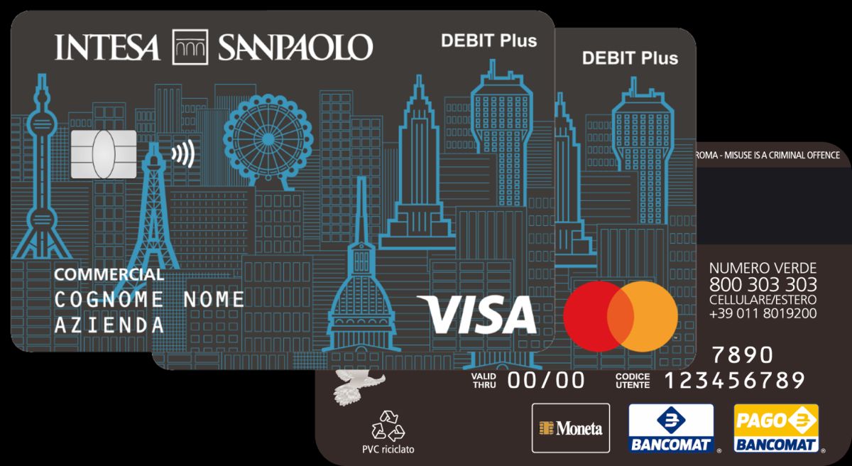 Valida per cinque anni, con limiti di spesa e funzionalità personalizzabili per garantire il controllo delle spese, la nuova Debit Plus di Intesa Sanpaolo consente di effettuare prelievi, bonifici, versamenti presso ATM e casse automatiche evolute. Il cliente sceglie se rendere visibile agli utilizzatori della carta la lista delle operazioni e il saldo del conto corrente aziendale e può verificare in qualsiasi momento i movimenti sul conto attraverso app e banca online. Debit Plus può essere utilizzata sia per i pagamenti nei negozi fisici, anche con tecnologia contactless, sia per gli acquisti online con conferma delle operazioni tramite PIN o riconoscimento biometrico.
