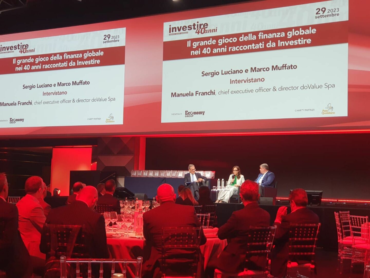 Una ventata di ottimismo è però venuta dall’intervista pubblica con Gianni Tamburi, il finanziere di Tamburi & Partners (Moncler, Eataly, Alpitour, per citare alcuni dei suoi investimenti) per il quale le prospettive dell’economia mondiale possono essere positive, a patto che alcuni Paesi emergenti – ha citato India e Vietnam – proseguano nella loro crescita e che riparta l’economia cinese, fermo restando il ruolo forte che l’imprenditoria italiana, per creatività e dinamismo, riesce a ancora a svolgere nel mondo. “La finanza ha assunto un ruolo troppo importante negli ultimi 20-30 anni – ha concluso tamburi – arrivando a condizionare le imprese, quando dovrebbe essere il contrario. Quello che ha rovinato le aziende indebitandole è il ricorso alla leva finanziaria, che con tassi a zero era facilissimo”. E’ seguita l’intervista a Manuela Franchi, chief executive officer & director doValue SpA. “In Italia siamo tra due fuochi: da un lato le banche hanno tassi di default molto bassi, ai minimi storici, molto più bassi dei momenti di crisi del passato: sembra un segno di buona salute, ma chi deve rimborsare i crediti fa fatica, il valore immobiliare sta diminuendo”.