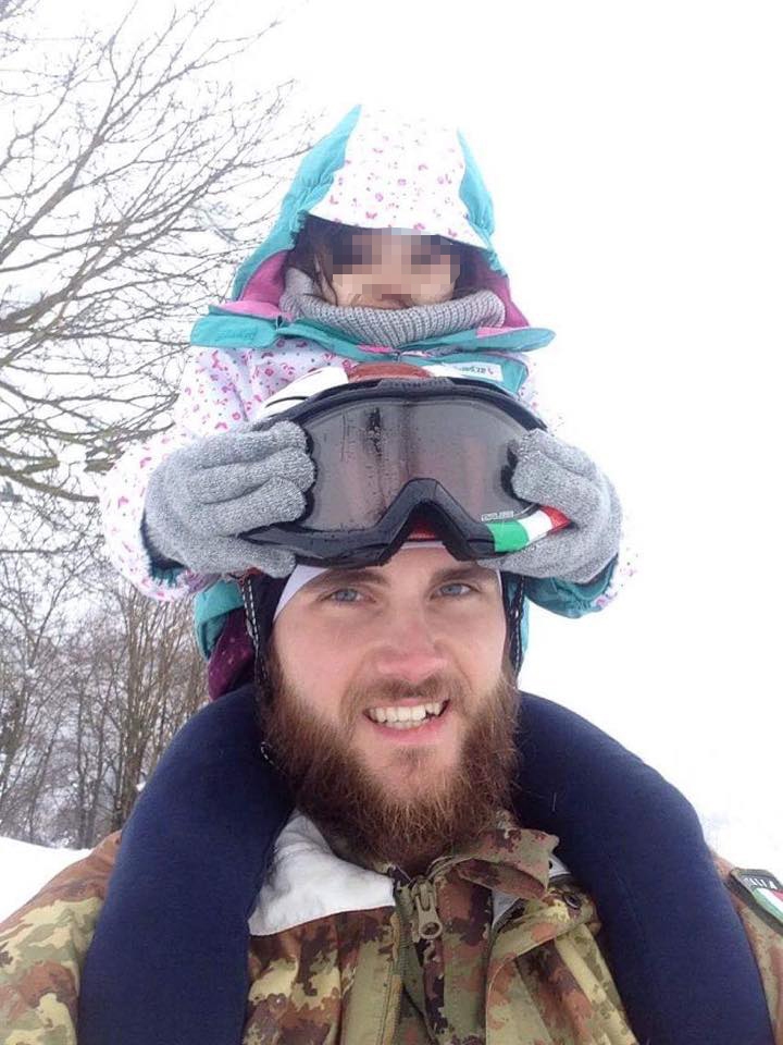 nare la casa dopo l’ultimo sciame sismico e le forti nevicate che hanno colpito l’Abruzzo. La piccola ha raggiunto la stazione dei carabinieri del paese, l’unico posto dove era ancora disponibile l’acqua calda e l’elettricità. Ma dopo la decisione di evacuare il paese, bisognava raggiungere un elicottero nel campo sportivo, a due km dalla caserma. Percorso che Rachele, così come gli altri abitanti, avrebbe dovuto percorrere a piedi. L’alpino vedendola infreddolita e stanca, l’ha presa per mano e se l’è messa in spalla. Con gli sci ai piedi, l’ha portata lui. Una foto postata su Facebook dalla madre della bimba è diventata subito un simbolo, condivisa sui social da migliaia di persone.