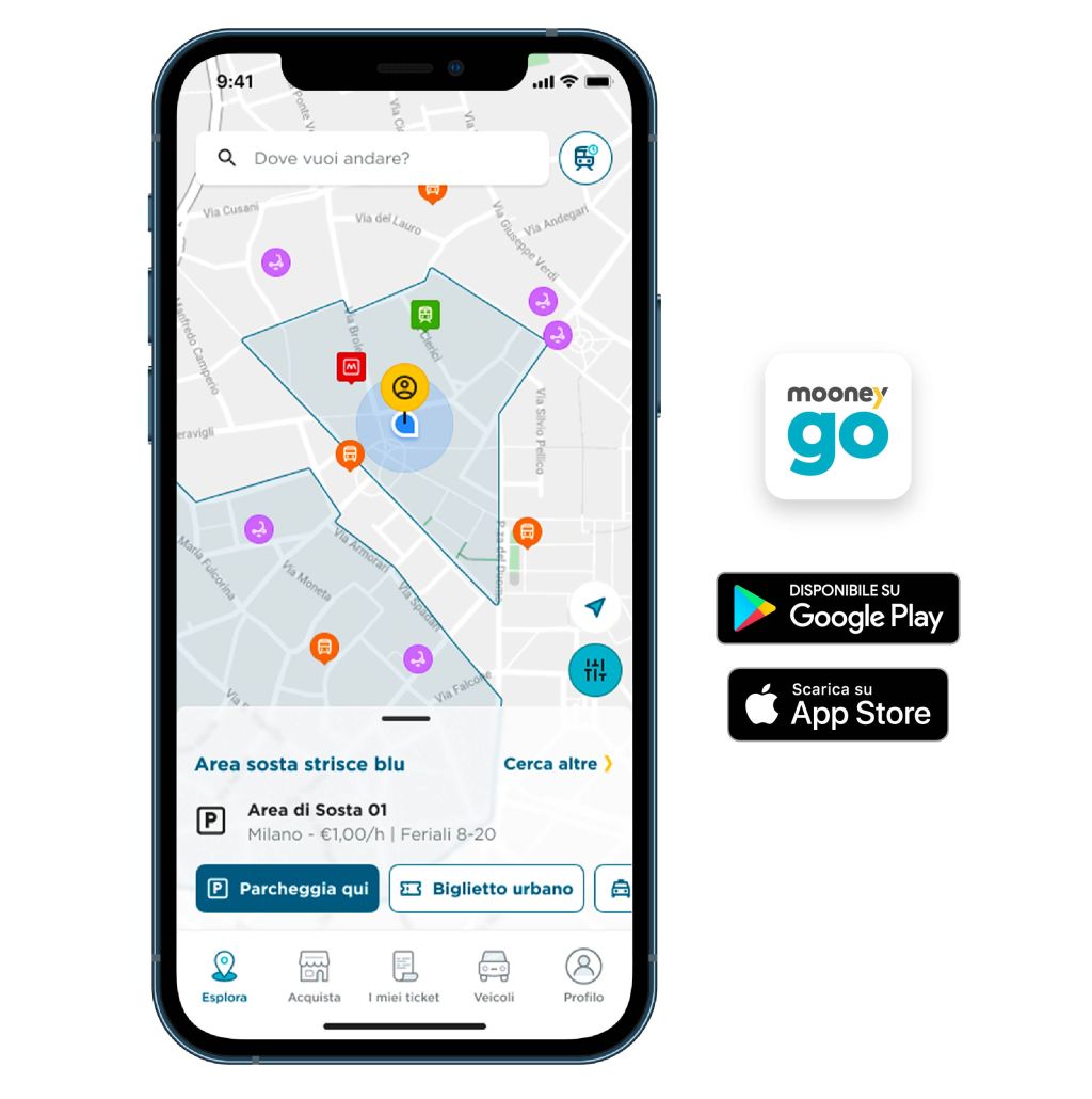 La nuova app MooneyGo permette di pagare il parcheggio su strisce blu, acquistare biglietti e abbonamenti di autobus, metro e altri mezzi di trasporto di numerose compagnie in tutta Italia, per spostarsi in città e fuori anche con treni e pullman su lunghe tratte. In diversi centri urbani è possibile trovare e pagare biciclette e monopattini in sharing direttamente attraverso l’app, oltre che prenotare e pagare il taxi.