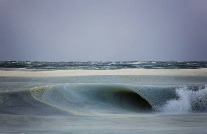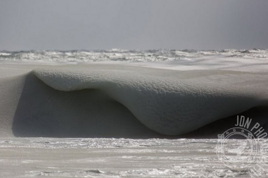 Il fotografo surfista Jonathan Nimerfroh è riuscito a immortalare, nell’isola di Nantucket (Usa), una serie di onde ghiacciate che si “infrangono” nell’oceano. Uno spettacolo incredibile di un fenomeno tanto misterioso quanto rarissimo. A causa delle basse temperature, infatti, le onde presentano sulla loro superficie dei cristalli di ghiaccio, che le fanno sembrare quasi solide.