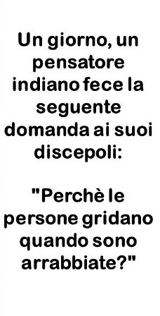 “Voi sapete perché si grida contro un’altra persona quando si è arrabbiati? Il fatto è che quando due persone sono arrabbiate i loro cuori si allontanano molto. Per coprire questa distanza bisogna gridare per potersi ascoltare. Quanto più arrabbiati sono tanto più forte dovranno gridare per sentirsi l’uno con l’altro. D’altra parte, che succede quando due persone sono innamorate? Loro non gridano, parlano soavemente.
