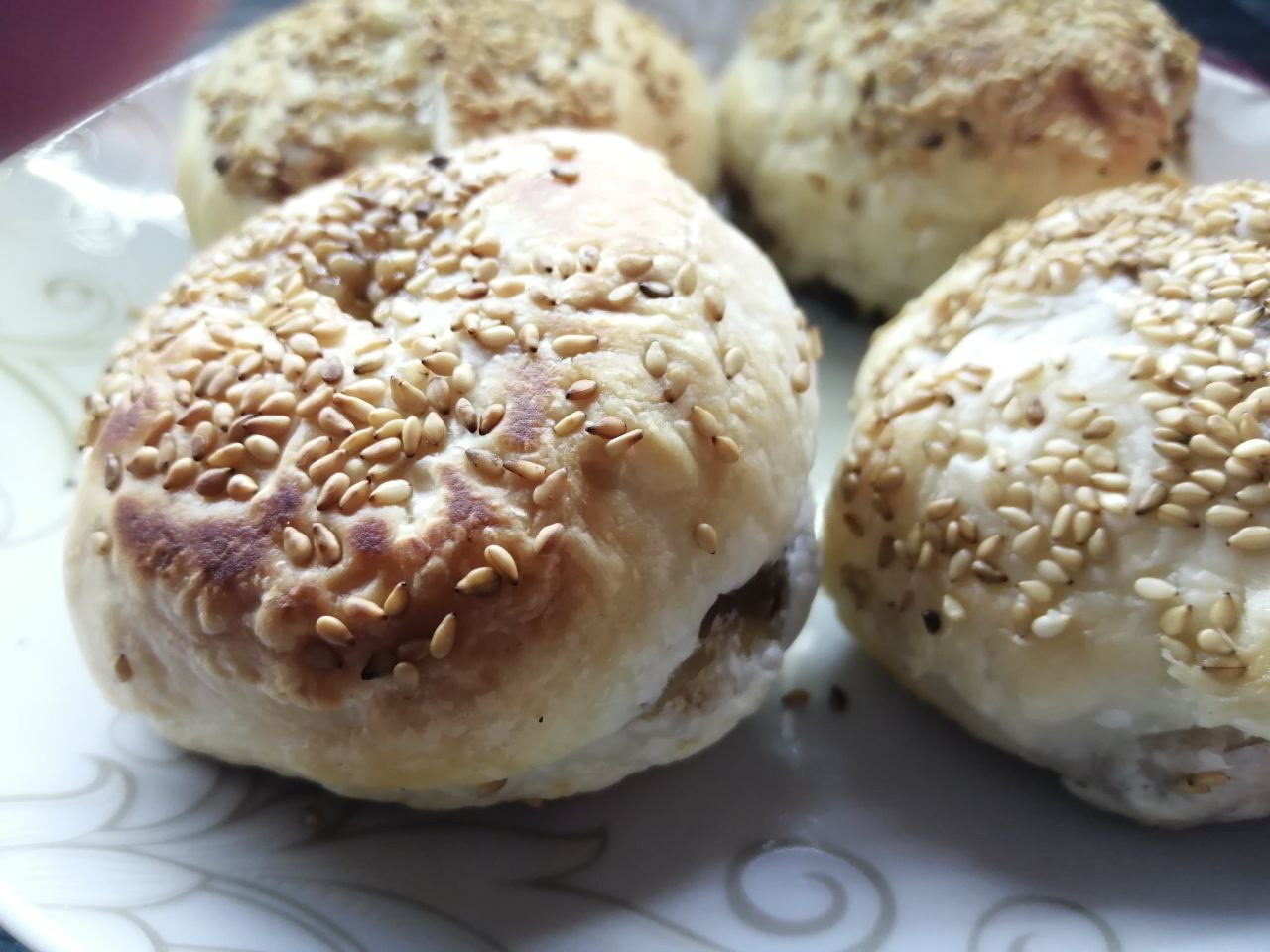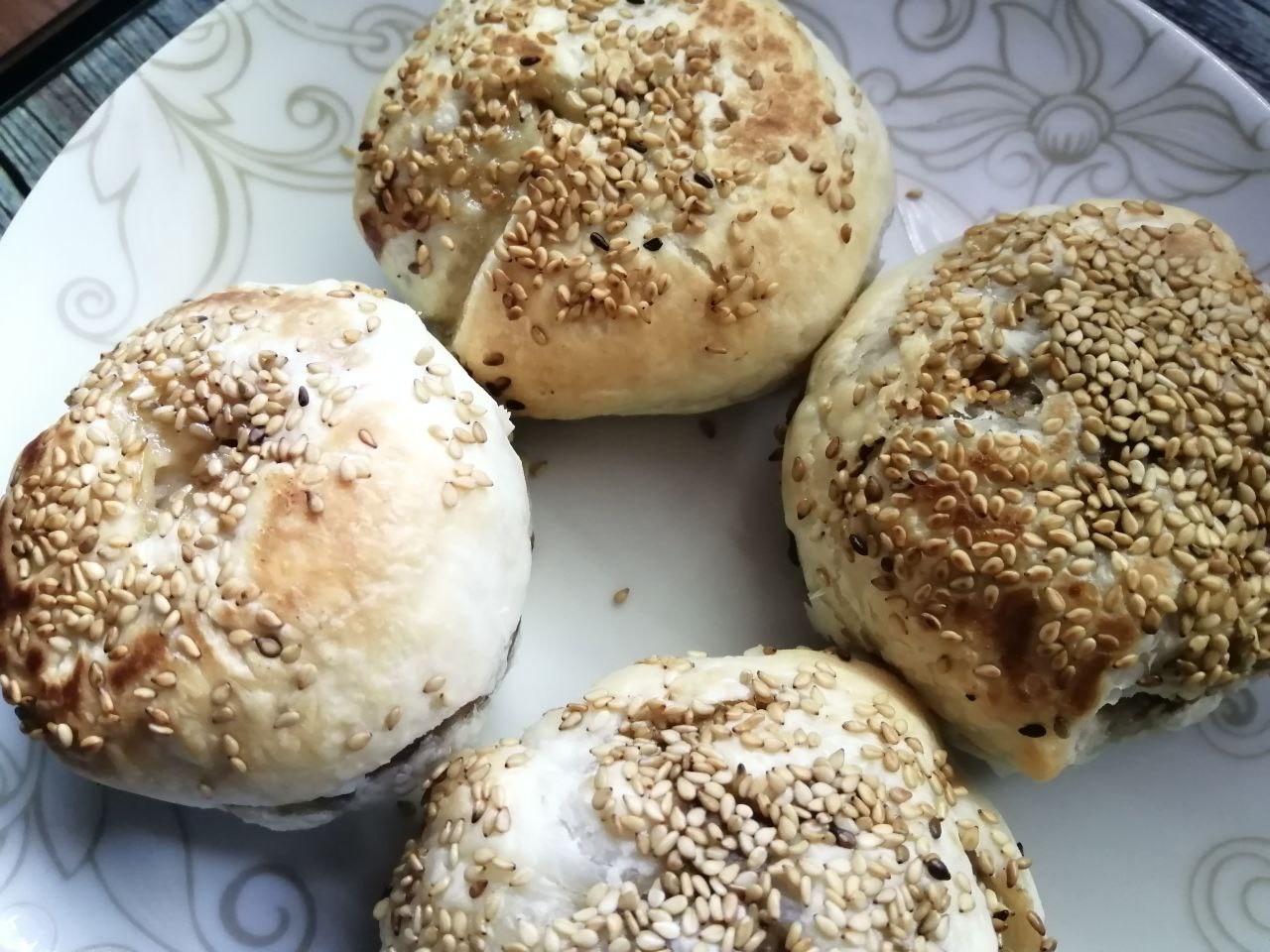 Mettere i cilindretti ottenuti in verticale, schiacciarli un po in modo da ottenere dei dischi e passarli nei semi di sesamo. scaldare una padella antiaderente, mantenere il fuoco medio basso e cuocere i dischi 2 minuti per lato. cuocere in forno statico 25 minuti a 200 gradi